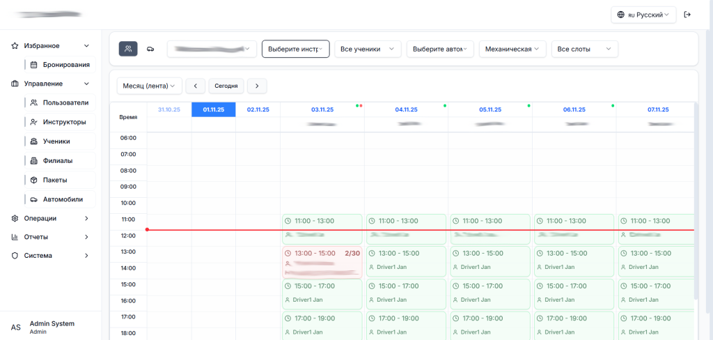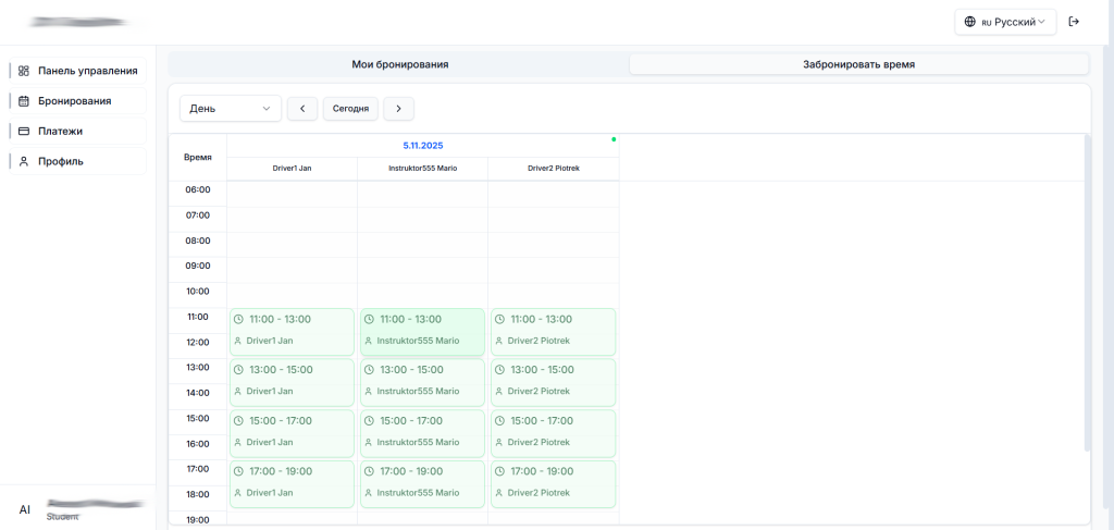 3. Возможность мгновенной замены инструктора или машины без конфликта.