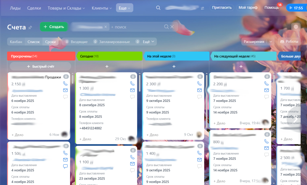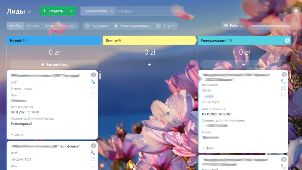 1. Лиды: заявки с сайта, рекламы и звонков. Система автоматически фиксировала все обращения, исключая потерю клиентов.