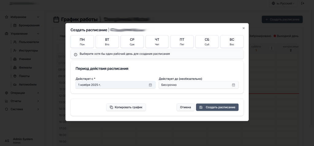 Инструктора и группы планировались с помощью таблиц и бумажных журналов. Смена расписания, замена инструктора или машины — всё это превращалось в ежедневный хаос: отмены занятий, пересечения групп и путаница с транспортом.