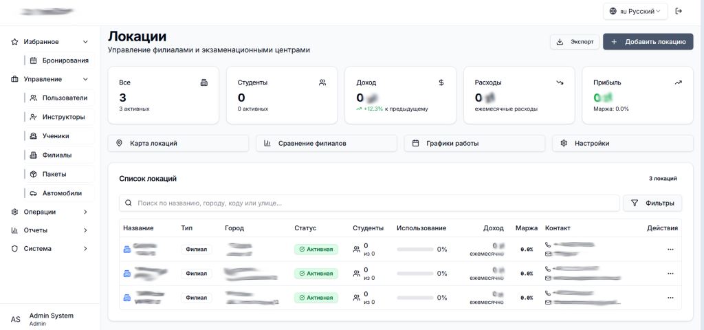 Руководство не имело возможности быстро оценить эффективность рекламы, загрузку филиалов и инструкторов, динамику продаж.