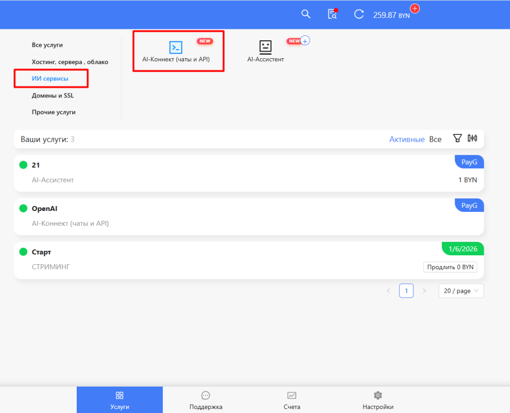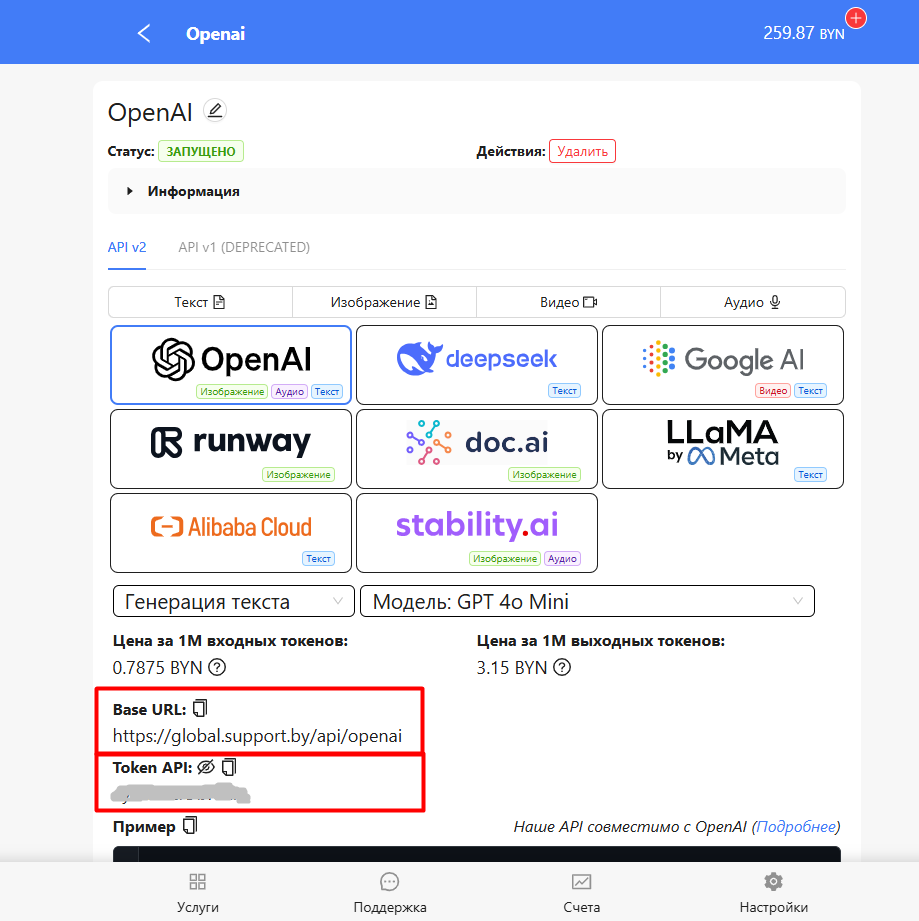 - Доступ к кабинету Support.by → активированная услуга AI-Коннект (где будет OpenAI API).